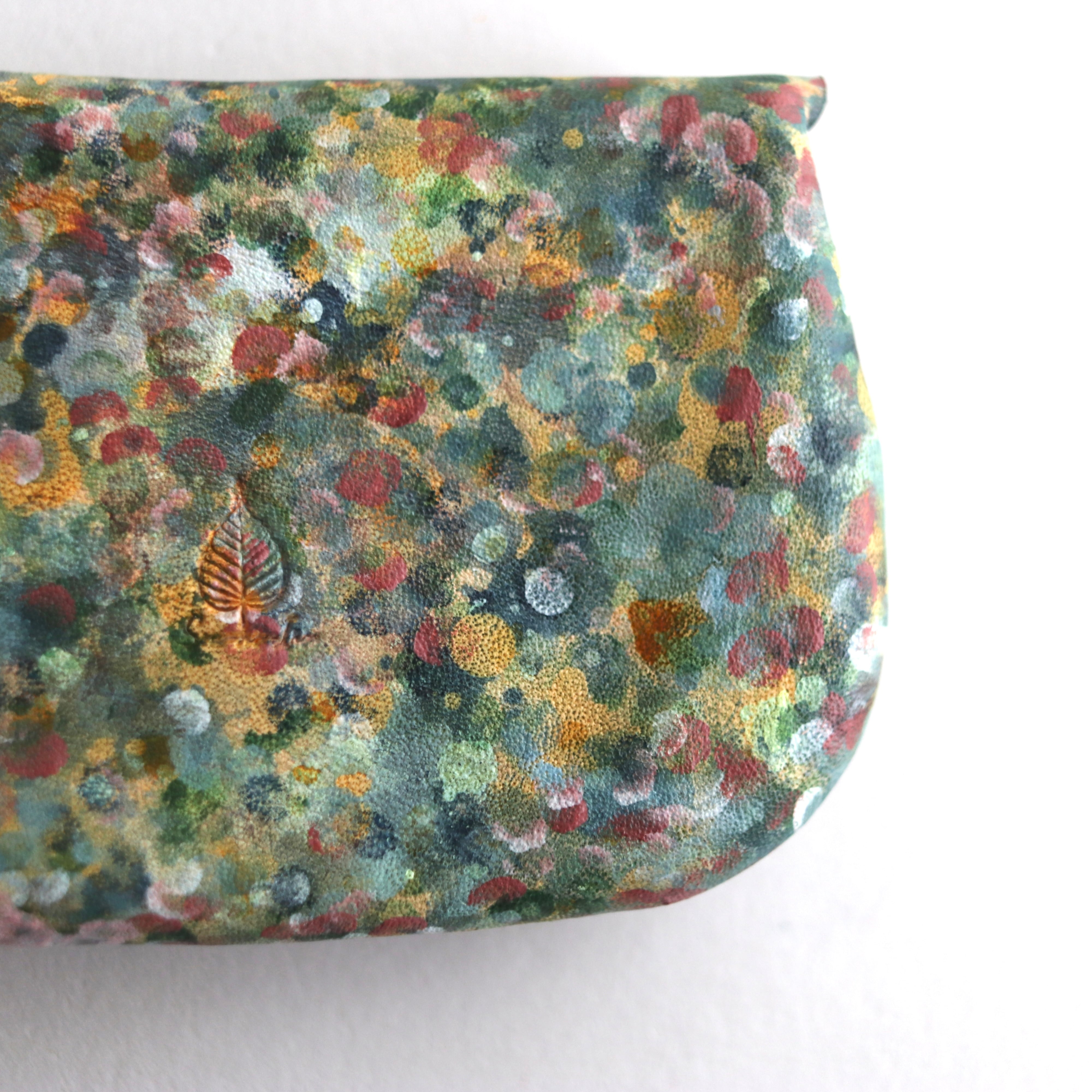 花畑のような、有機的で偶然性を含んだ表情が 革の中に生まれています。