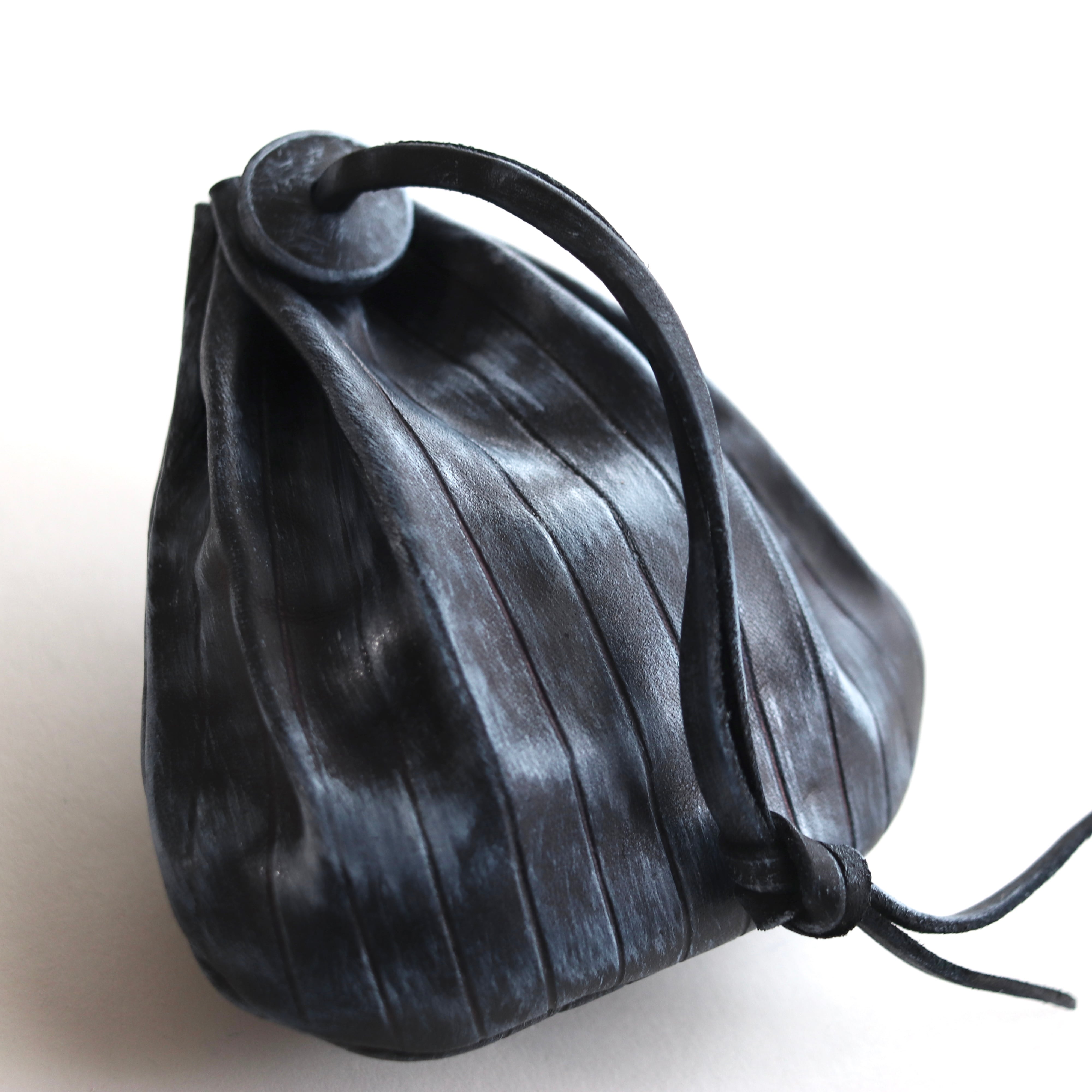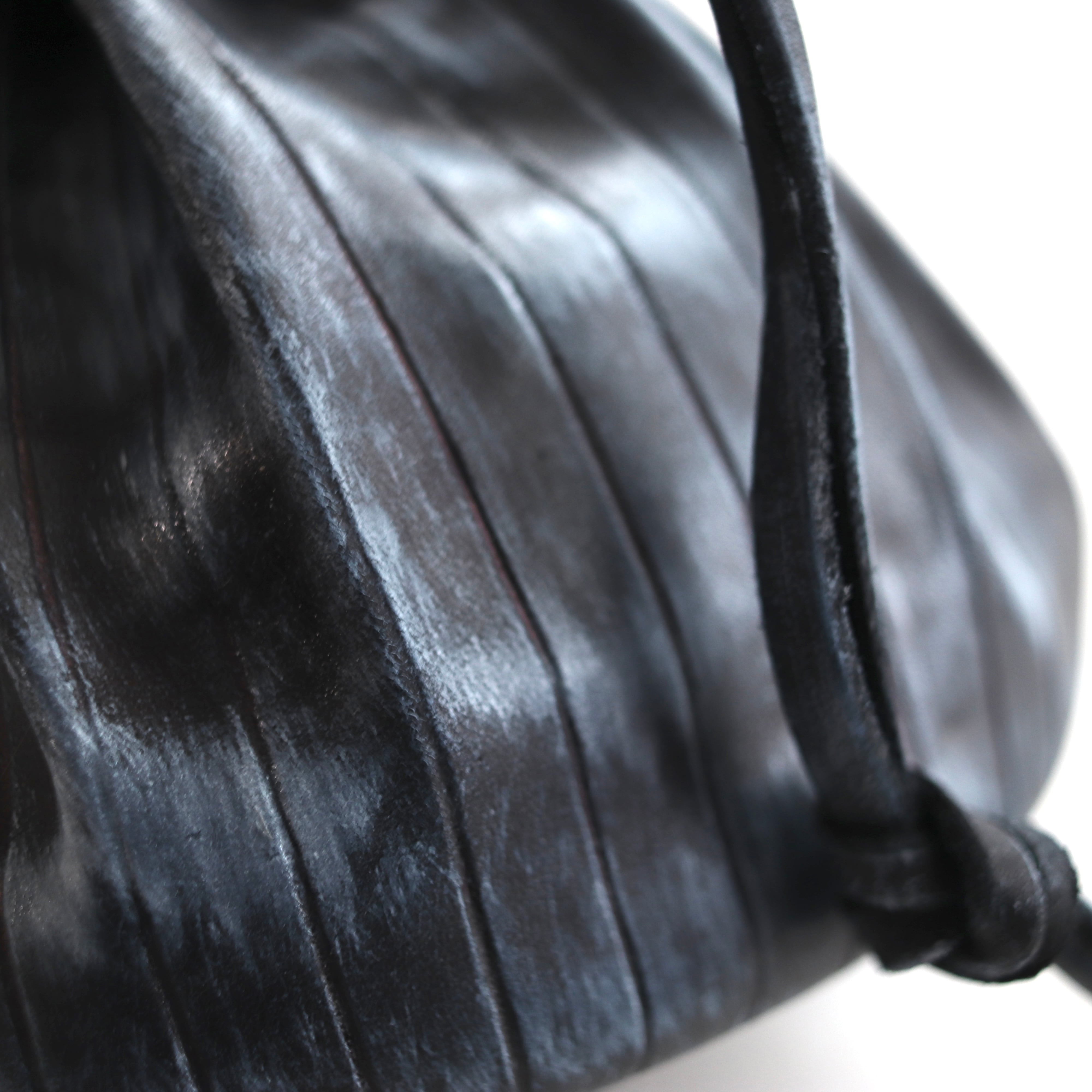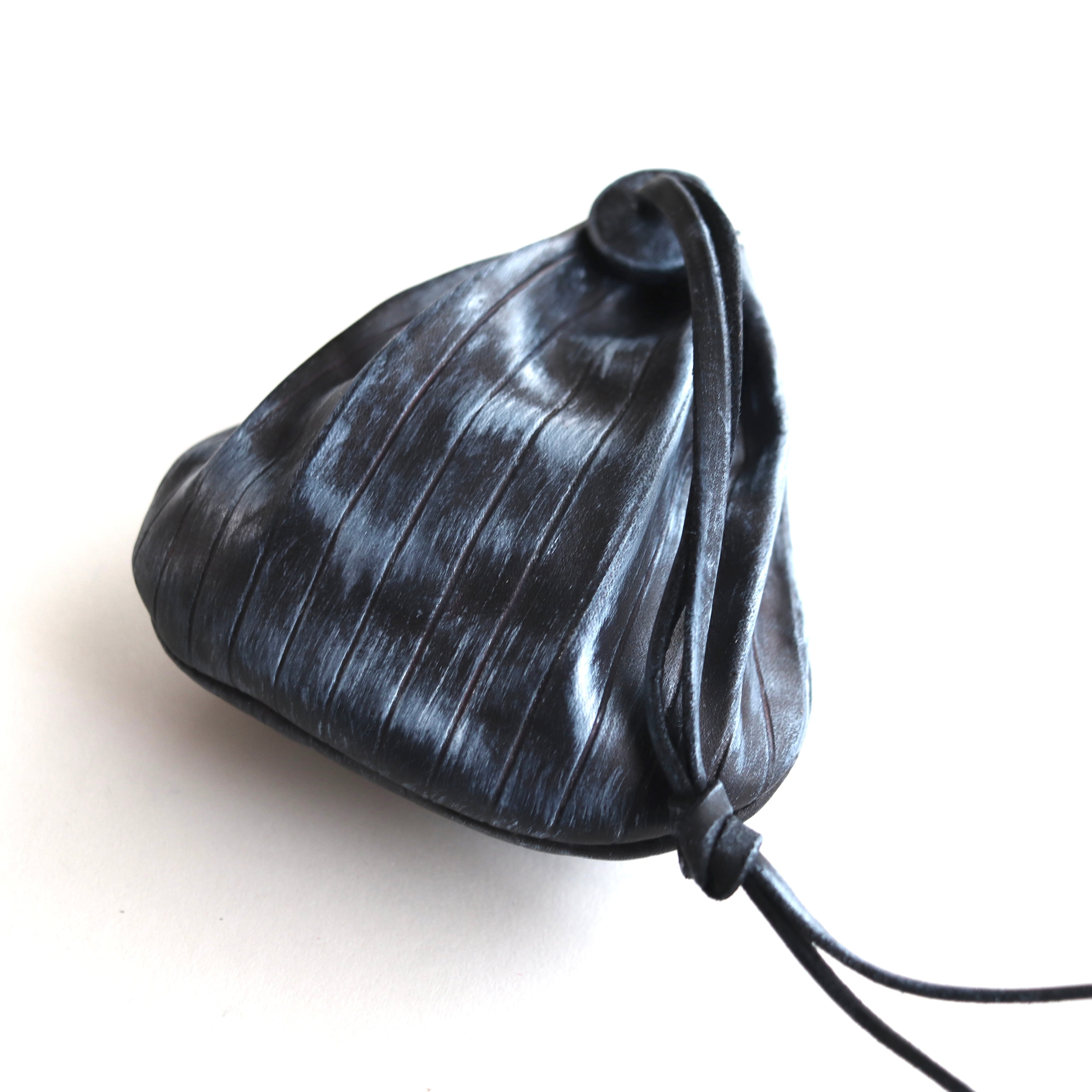 ヌメ革に初めに藍染を施し、その上から墨染。