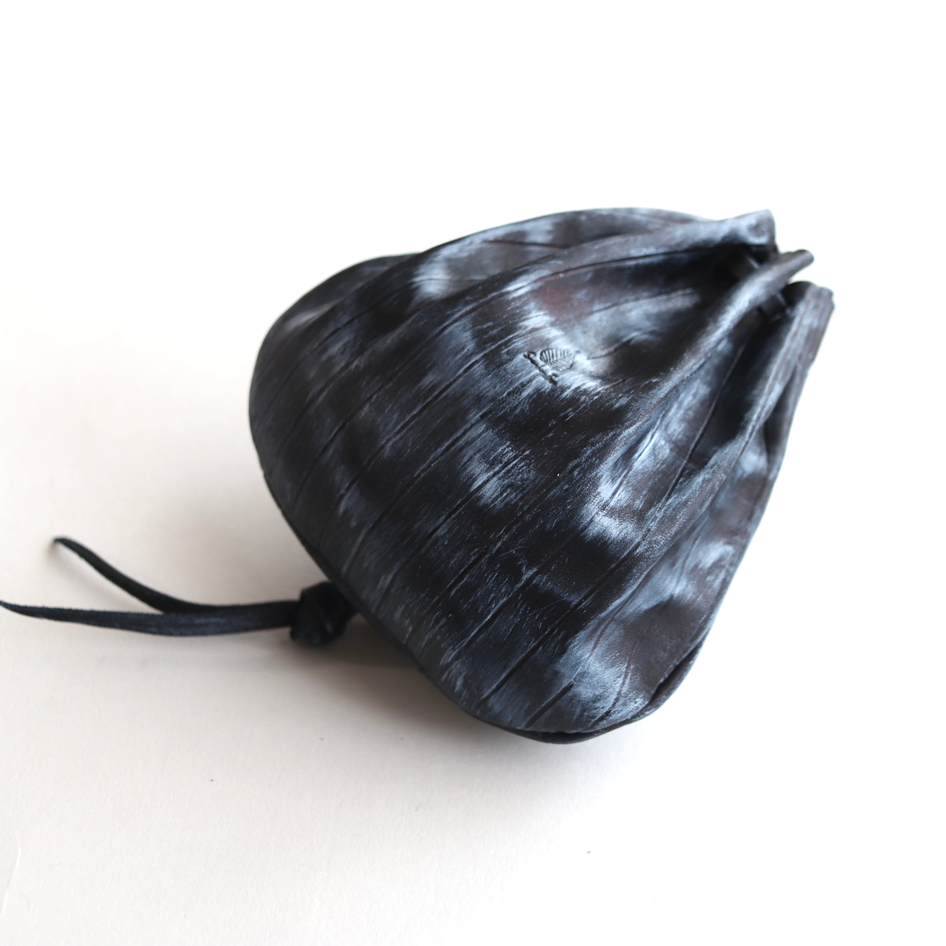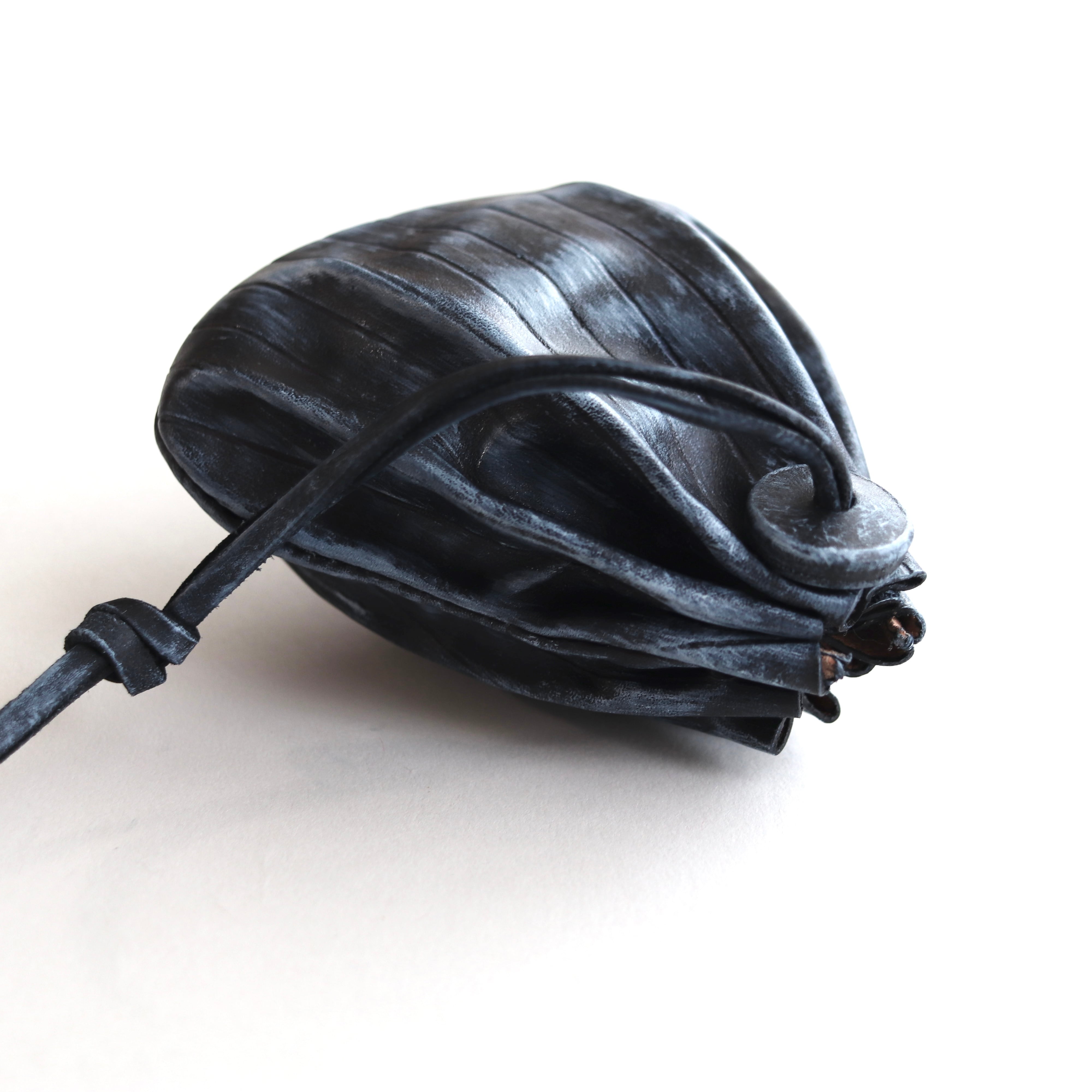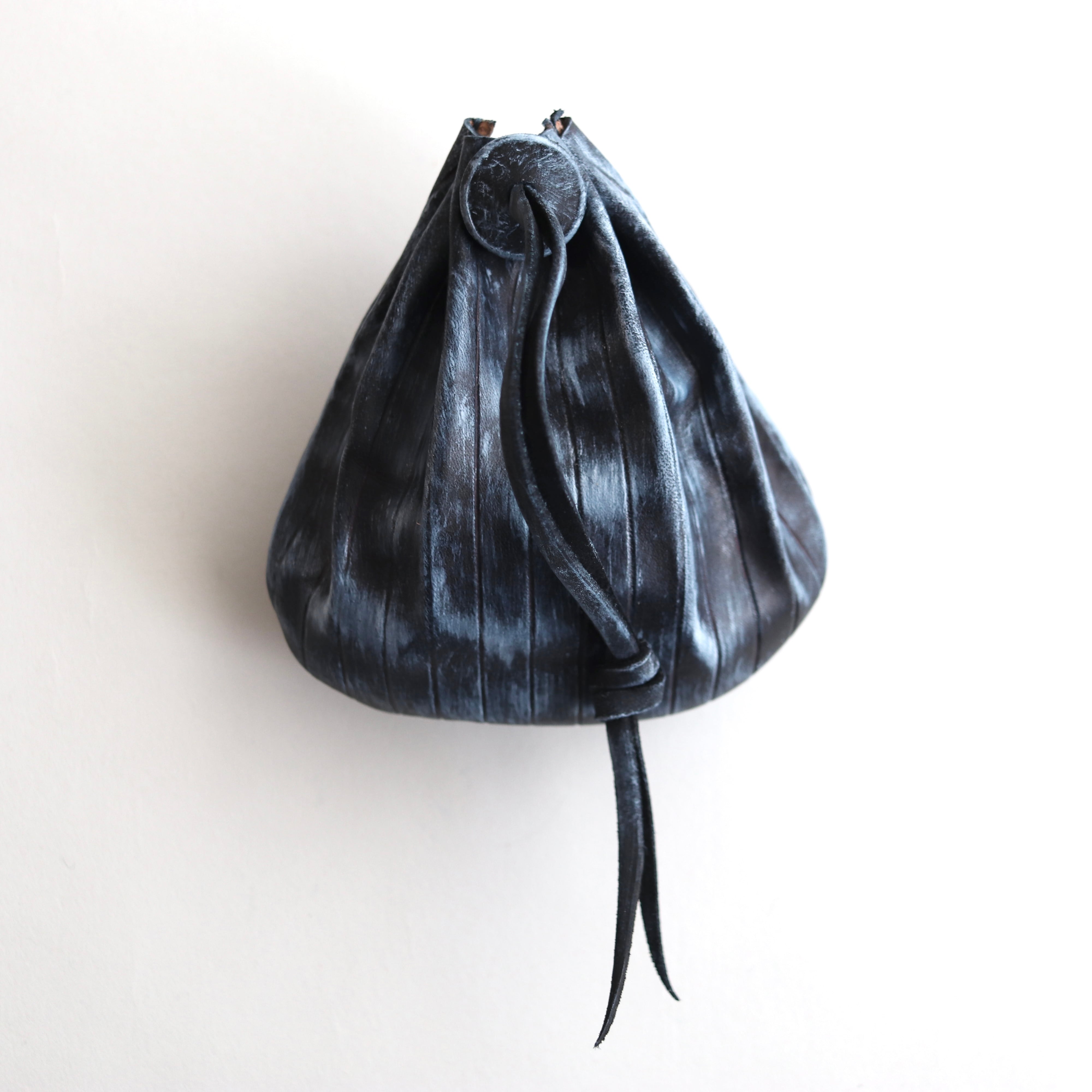 ヌメ革に初めに藍染を施し、その上から墨染。