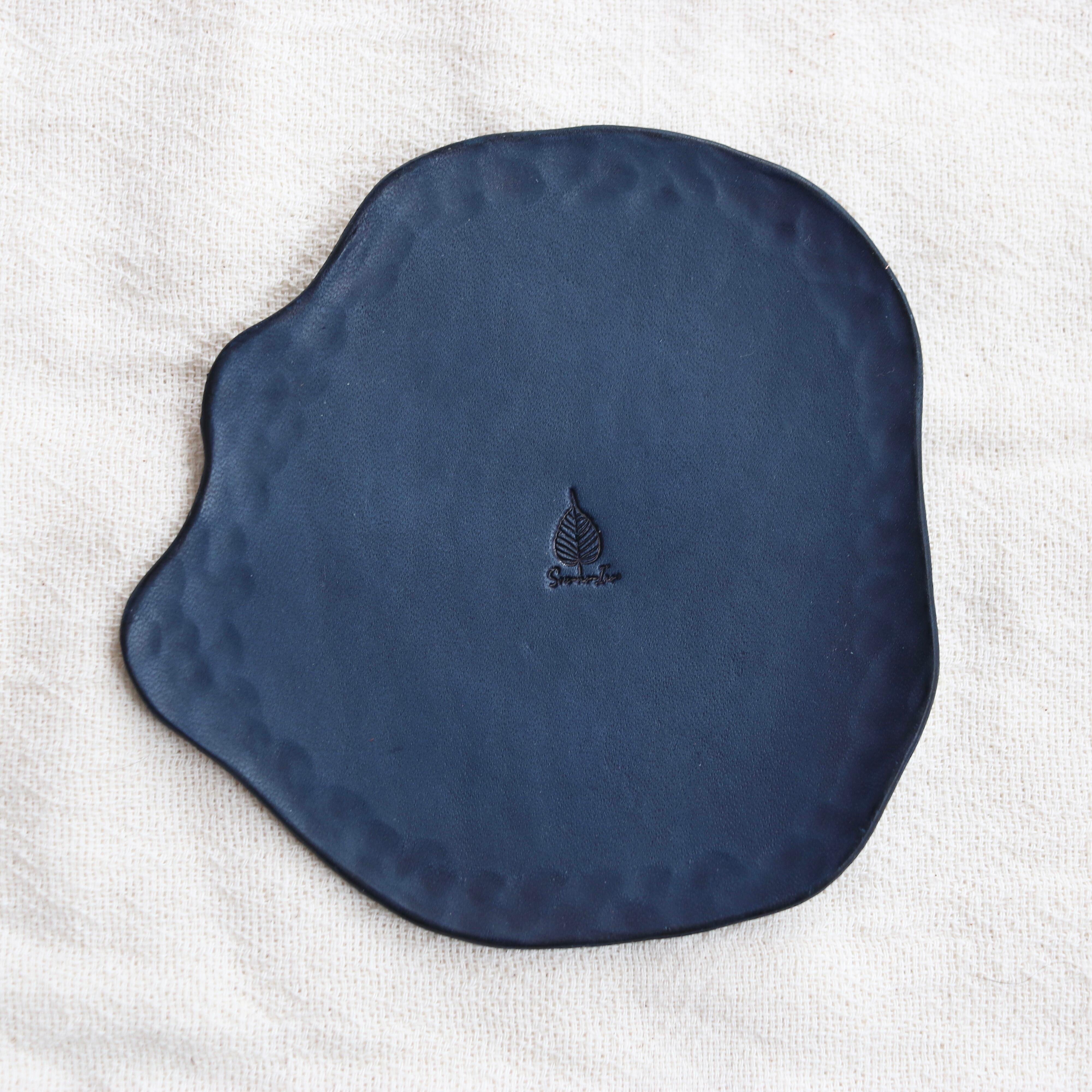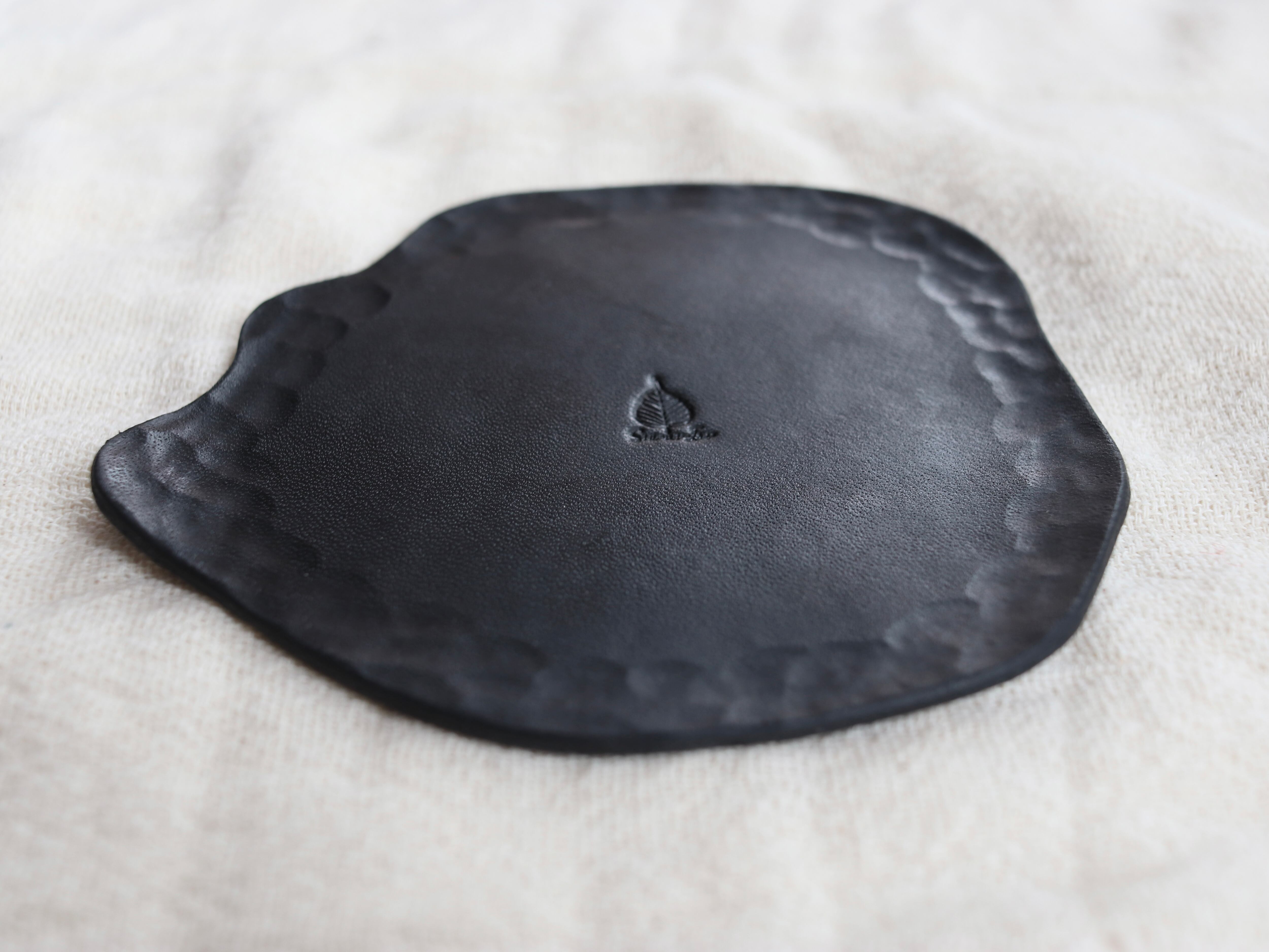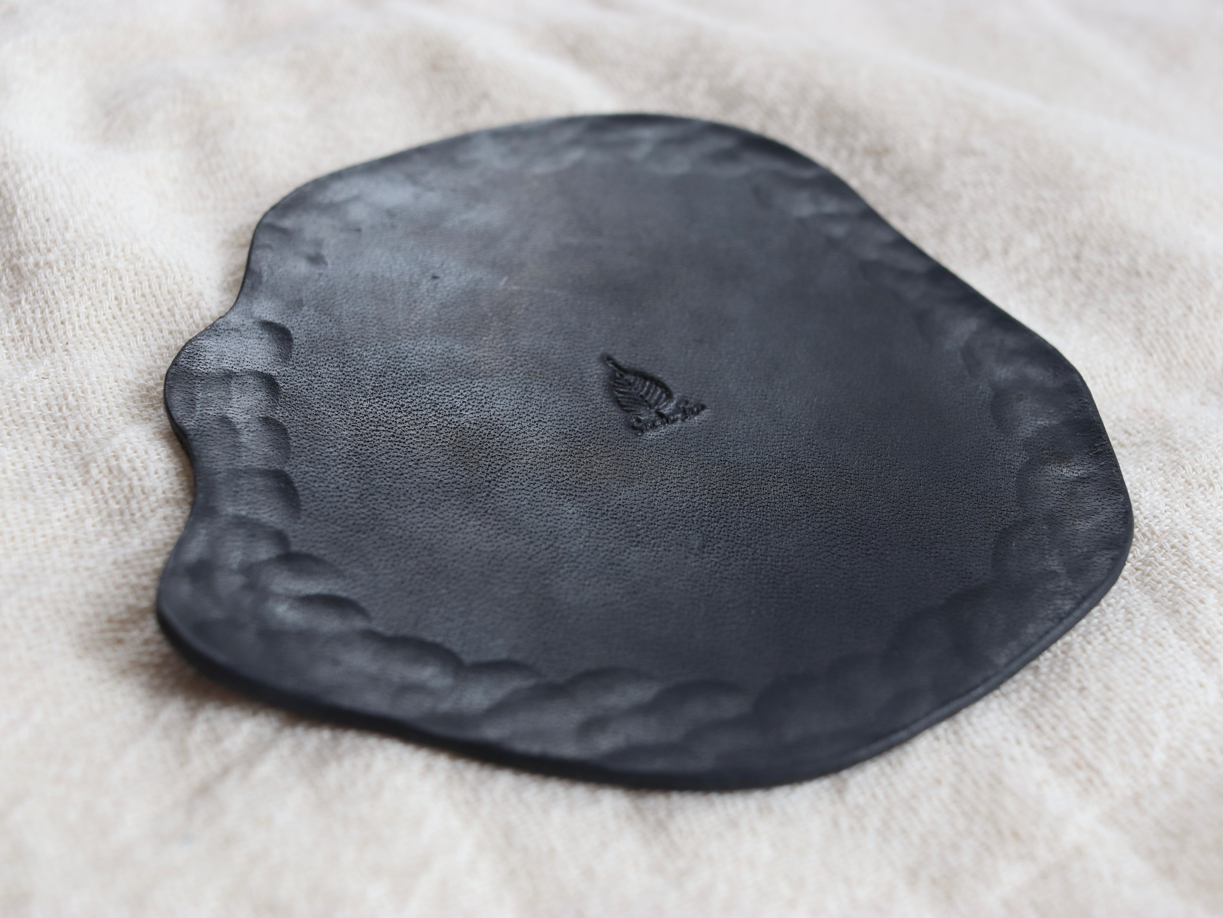 2.3mm厚前後の厚みのあるヌメ革に草木染を施したレザーコースター。
