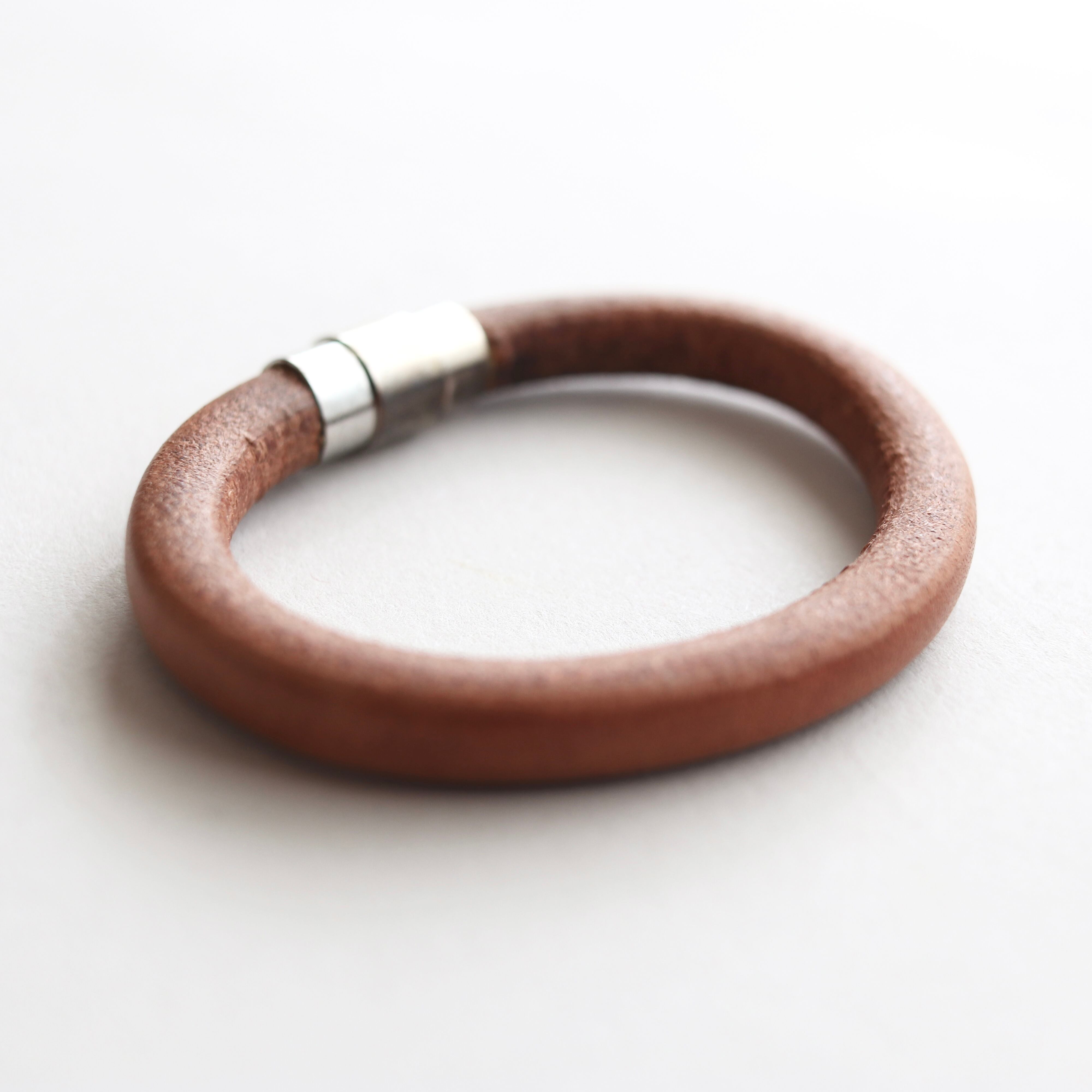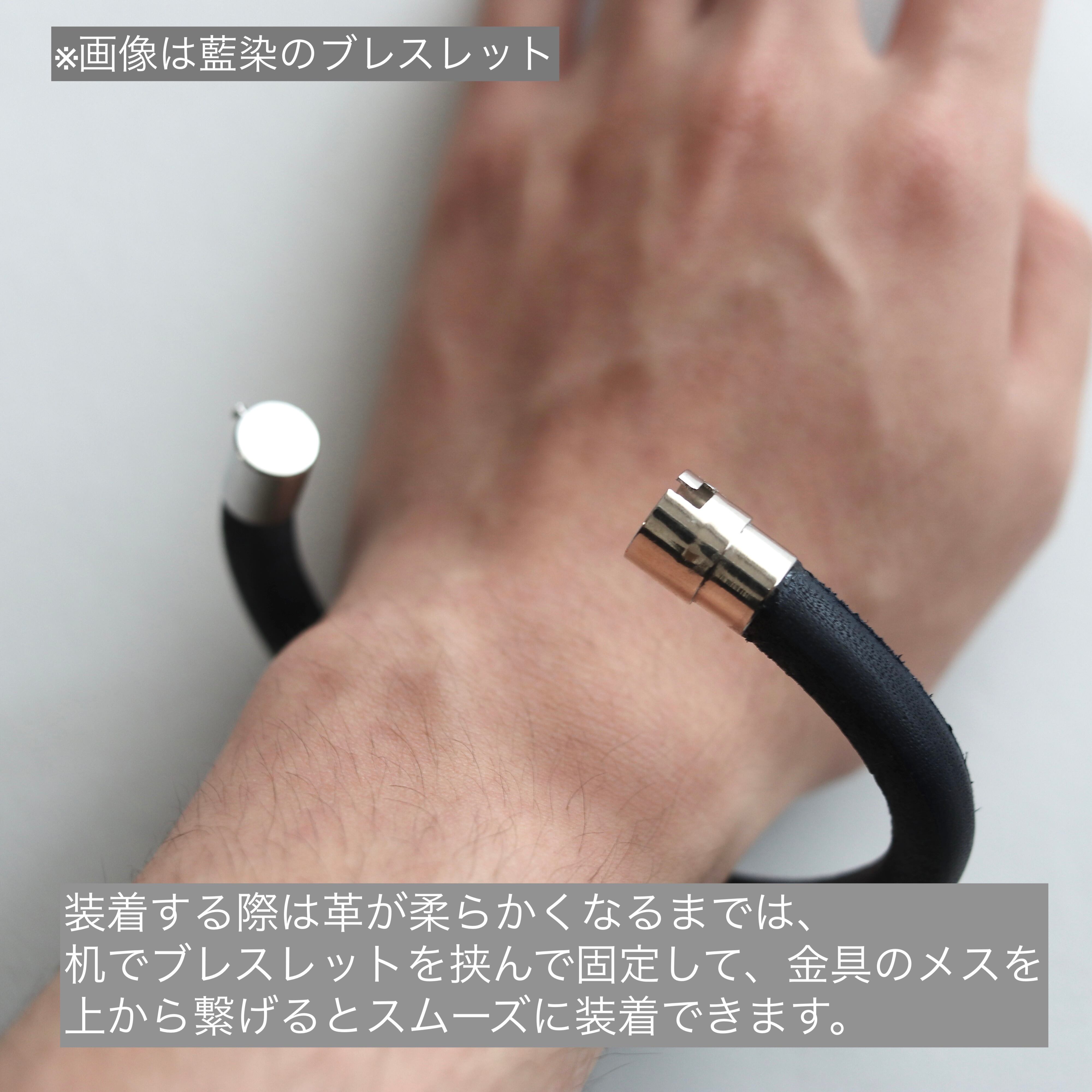 ヌメ革の丸紐を使ったブレスレットです。